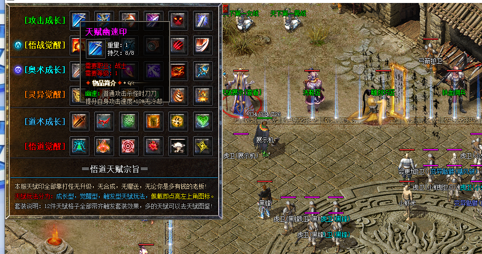 拒绝 “属性刮痧”!176 沉默版本升级核心装备系统,让每一位玩家都能打造 “牛逼属性”:装备升星最高可达 18 星,每星随机追加 2 点攻魔道属性,12 星后解锁元素加成,烈火剑法附带灼烧、冰咆哮触发冰冻,战力翻倍飙升。独家 “隐藏特技转移” 玩法,稀世装备的专属属性可 100% 抽取转移,道士宝宝伤害 + 12%、战士技能抵抗 + 25% 等神技自由组合,一件装备坐拥四大特技,单挑 BOSS、群战 PK 皆占先机。