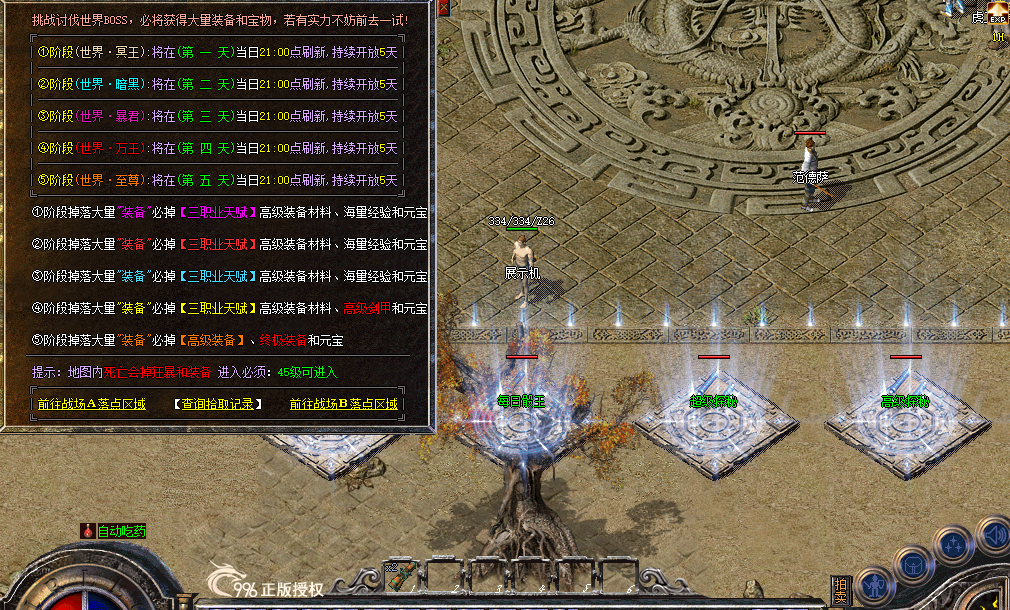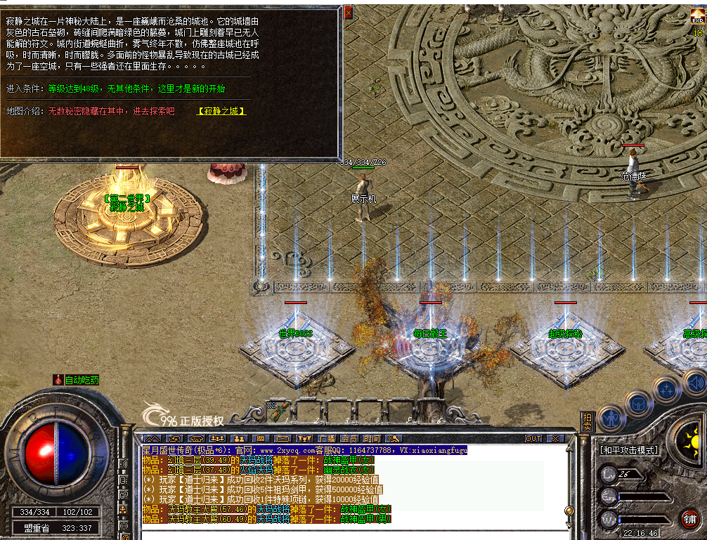 告别单一大陆的枯燥!176 沉默版本开放六大核心大陆 + N 个特色副本地图,从经典的比奇、盟重大陆起步,解锁仙踪林、异度空间、天地宝库等发育圣地,最终挑战酆都之城的终极 BOSS,每一片大陆都有专属风景与宝藏。主城 BOSS 定时刷新,掉落真充红包与高阶装备,手动玩家牢记刷新时间,白嫖元宝不是梦;隐藏地图 “沉默圣地 - 泗水谷” 藏着稀有材料,七龙珠召唤神龙可爆海量铭文神石,探索过程充满未知与惊喜。
