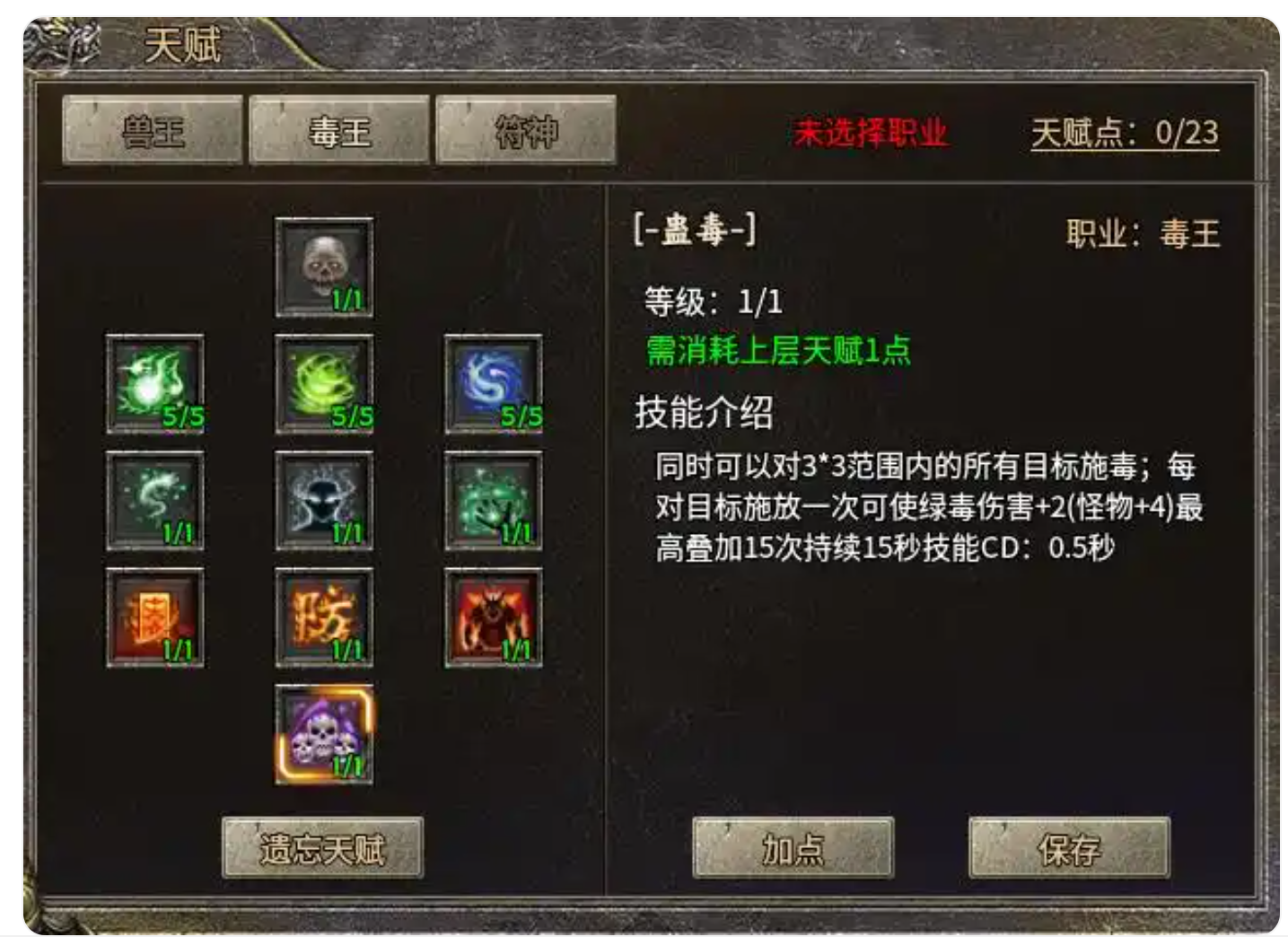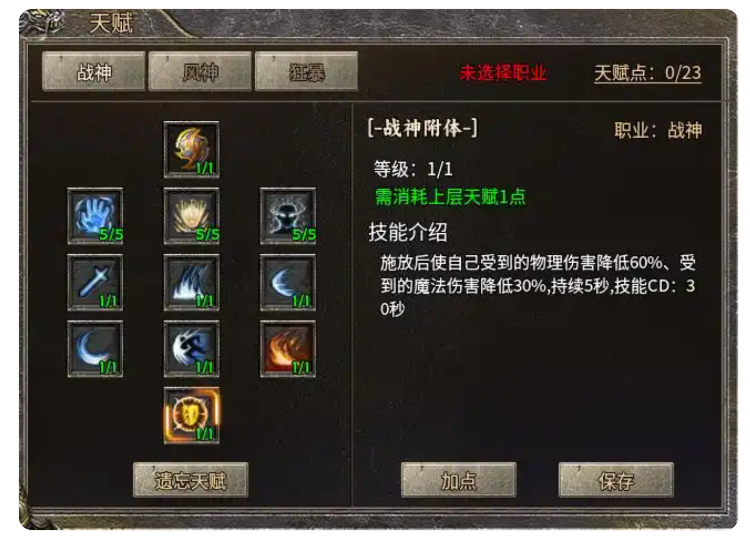 谁规定传奇里战士只能扛、道士只能苟、法师只能远程输出?《再战传奇》用 “天赋系统” 彻底打破了这个固化认知。游戏为所有职业准备了三套特色天赋树,每一套都藏着不一样的战斗可能: