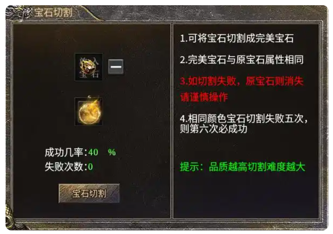 宝石系统:分原始宝石和完美宝石,前者属性扎实但只能装 1 个,后者最多可装 8 个(不同名),除了提升基础属性,还能解锁 “经验加成、吸血、攻击附特效” 等近百种额外效果。玩家能通过 “宝石切割” 获取完美宝石,游戏还贴心加了 “5 次失败后第 6 次必成” 的保底机制,不用担心 “血本无归”;而宝石所需的龙币,只需聘用矿工采矿回收即可,矿工一次能雇 12 小时,不用自己手动挖矿,省时又省心。