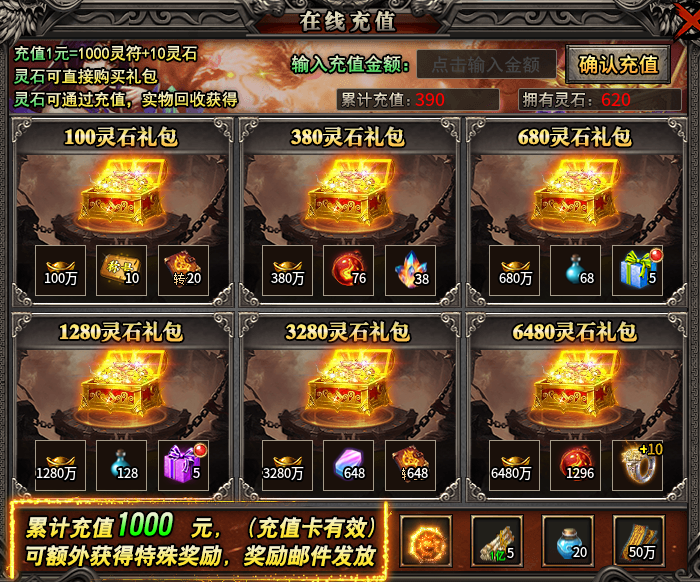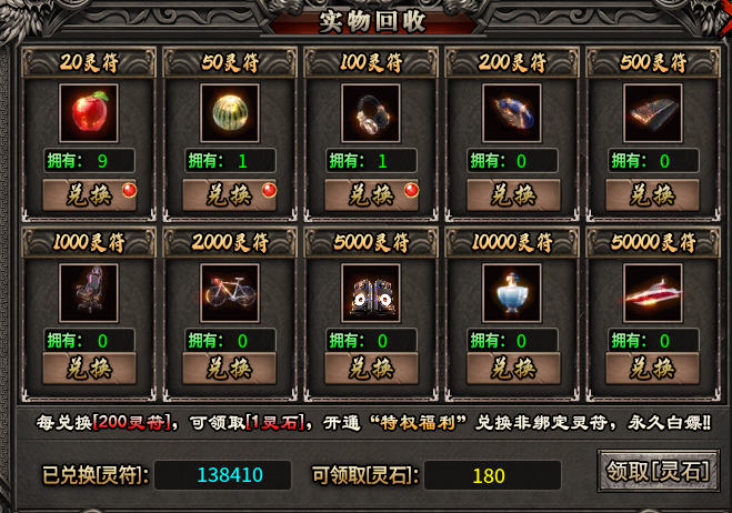打怪就能获得实物,通过兑换灵符就获得灵石,都是通用货币,灵符主要用来提升切割。灵石就是买礼包!玩这个服就一定要记得刷游戏活动,都是资源,特别是迷宫寻宝,里面的实物货币大把大把爆,每次开启20分钟可不能错过。